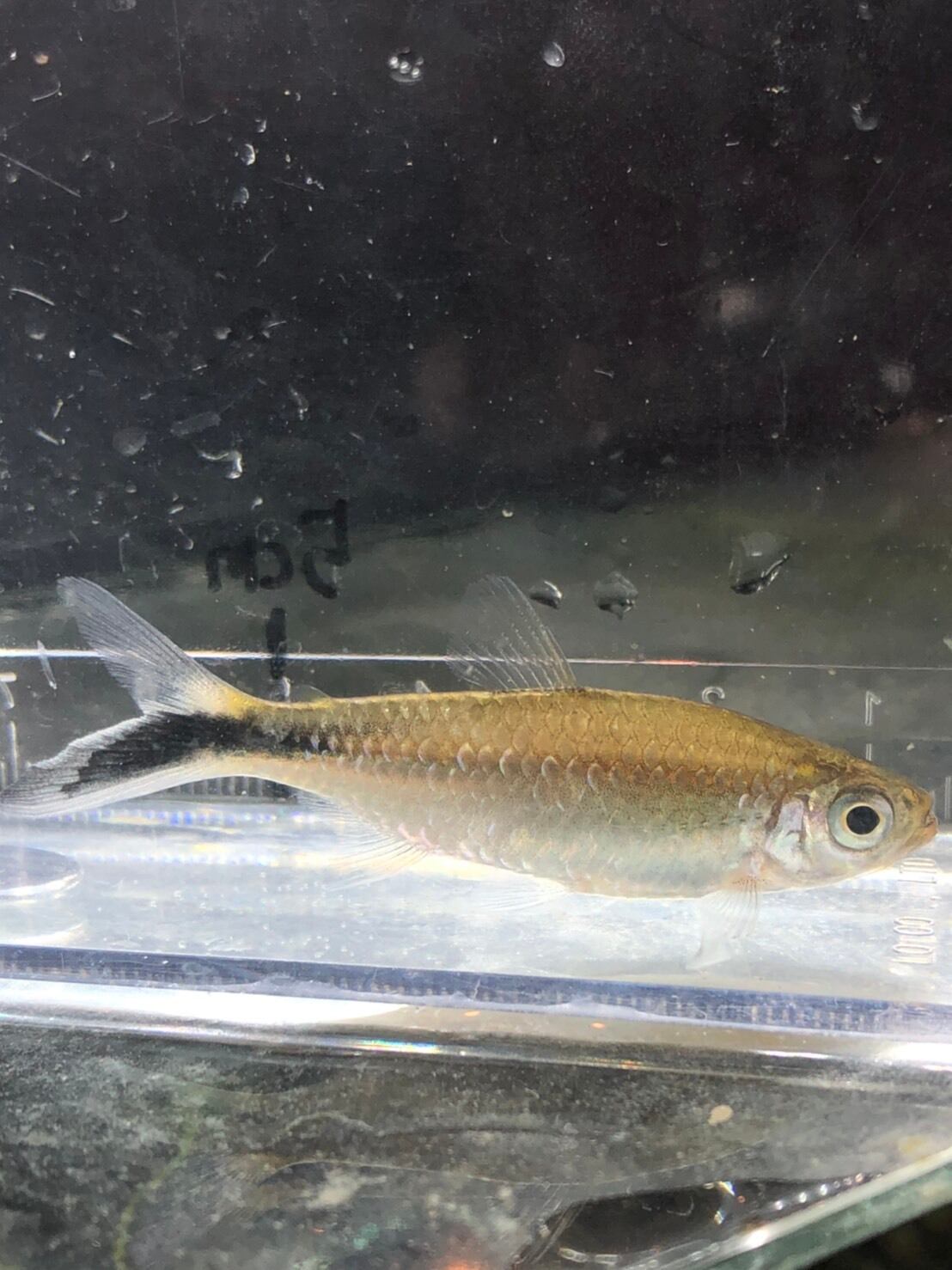 尾びれ下端にかけて斜めに入るブラックラインが、非常に印象に残る美魚です。